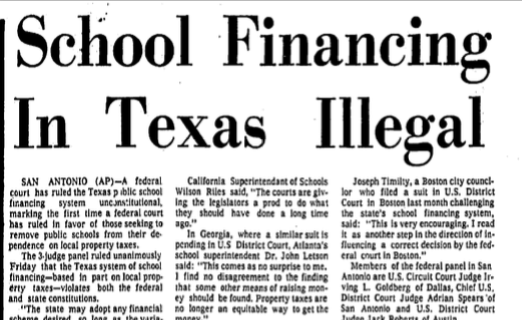 Filed on behalf of San Antonio’s Edgewood Independent School District, six other school districts and 25 families, the suit, known as Edgewood ISD v. Kirby, argued that Texas school funding violated the state constitution’s requirement that the legislature provide an efficient and free public school system.